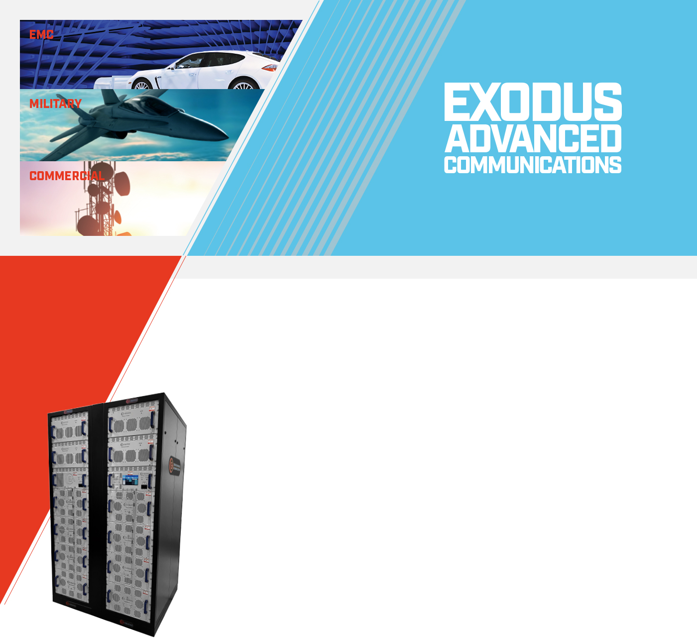 “Exodus” is a “Best-in-Class” SSPA manufacturer delivering products from 10 kHz to beyond 51 GHz. The company’s extremely ruggedized product line consists of LDMOS, GaN (HEMT) & GaAs devices where we manufacture significant quantities of our own devices. The company also uses clean-rooms for manufactur- ing the latest advancements in technology, designing and fabricating low, medium and high power amplifiers with Chip & Wire technology. The company has a very wide range of stand-alone modules, integrated amplifi- er chassis configurations, and full turn-key systems as needed to satisfy customers demanding the most reli- able products available. Exodus Advanced Communications is a multinational RF communication equipment and engineering company serving commercial and government entities and their affiliates worldwide.